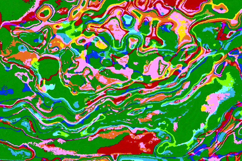 I then took one of these outputs into Photoshop and began to “cutout” shapes from the image.