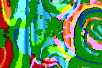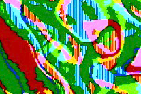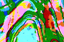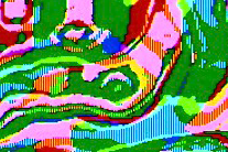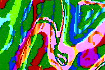 The “beef and potatoes” content of my work consists of graphics I produced earlier in the year using a technique called circuit bending. This was a processes where by I took a digital camera – in this case a simple usb webcam – and I interrupted the signals between the cameras sensor and the image processing chip. This is a technique pioneered by Reed Ghazala, who is often credited with its invention.