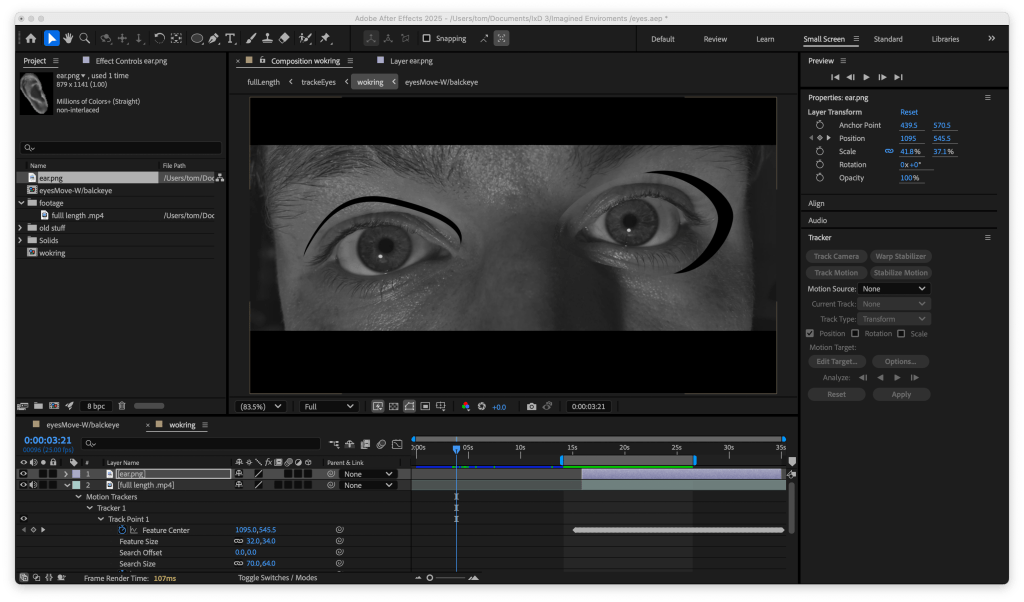 I tracked eyes and mouth scenes and used them to affect the position of the objects themselves as well as the cropping or framing of the video as was the case with the mouth.