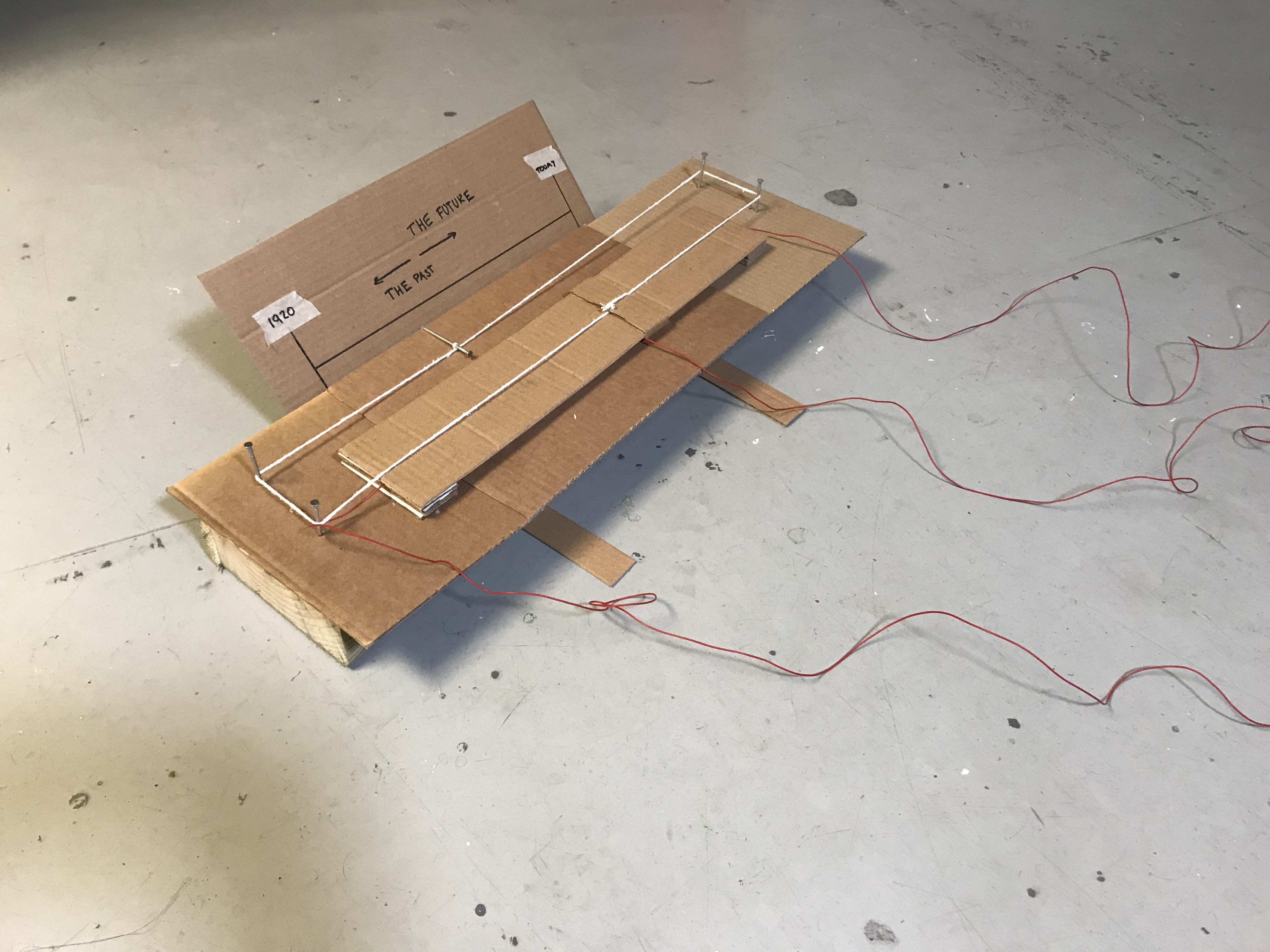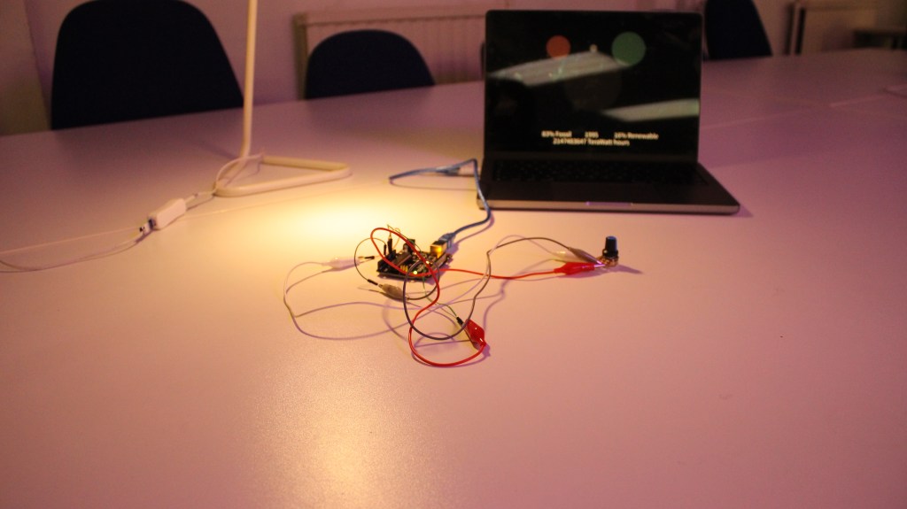 Now that I had the data displayed and a way to scroll through it and visualise it, it was time to clean it all up. I wanted to make the potentiometer more like a radio dial so the timeline could be easily displayed. So, using cardboard and some scrap timber I found lying outside I started to create my Arduino controlled “radio dial” potentiometer. It took a few iterations, but the design eventually started to take shape, roughly following the initial ideas. And eventually I had a finished design, modelled off old radio dials it allows for a person to scroll through time and see our historical energy usage by generation type from 1920 till half an hour ago. Highlighting our journey to net zero energy production, allowing the individual to make their own judgment on whether we are making the transition fast enough…