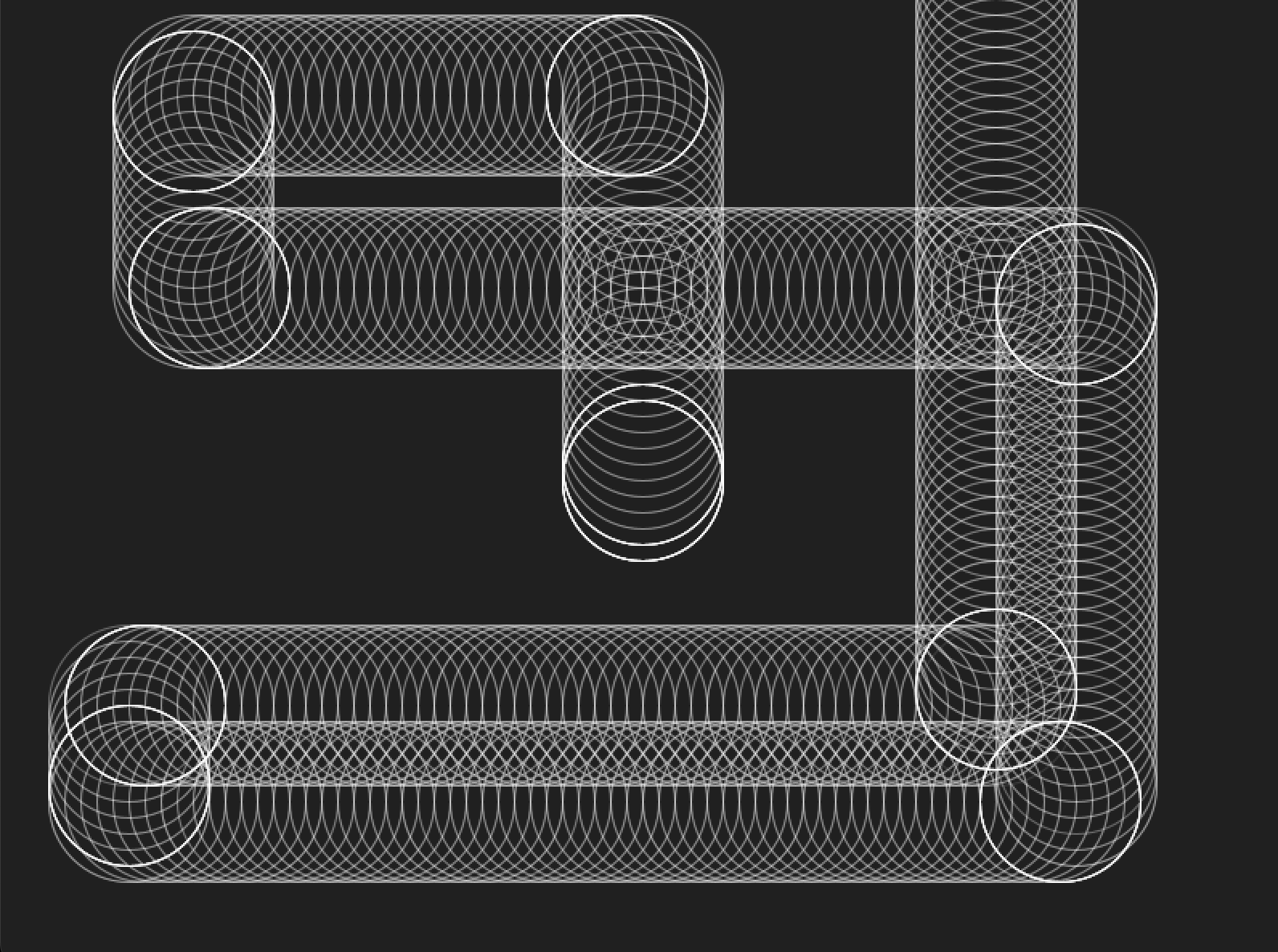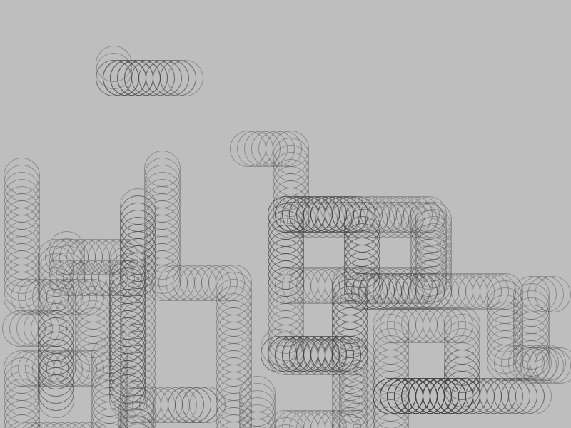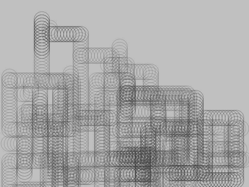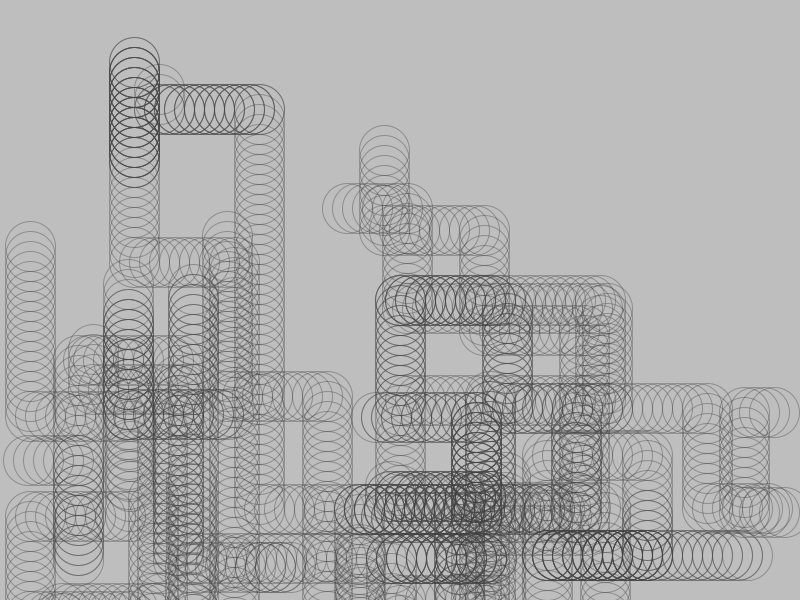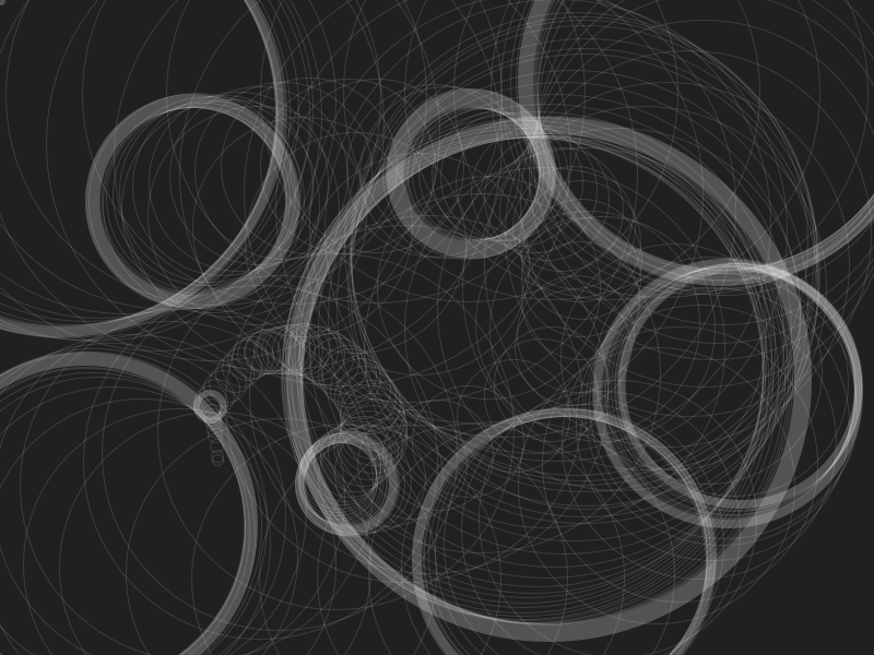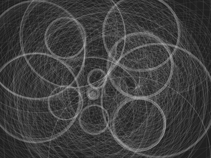 I liked this style of image with the overlapping circles that stated to look like pipes. I wanted to fill the page with these “pipes” but didn’t want to have to the work to manually draw the circles with arrow keys so I made it randomly draw the pipes for me. Every 10 circles it changes direction and when it “runs off the screen” it comes back at a random point and starts again.