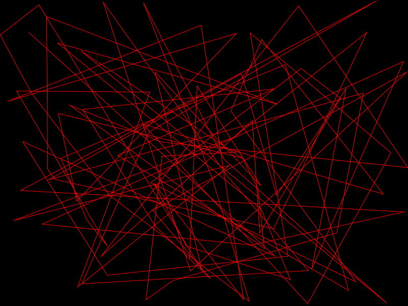 We also explored creating “shapes” during workshop 3. Below is a program I made that randomly generates a new polygon with 100 vertexes. Like a big jaggy sketch.