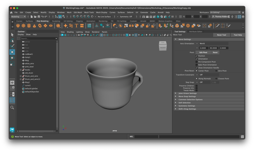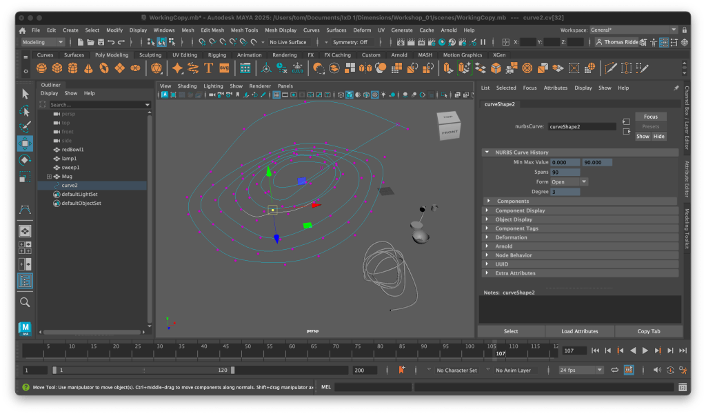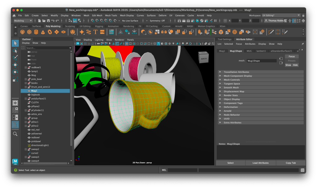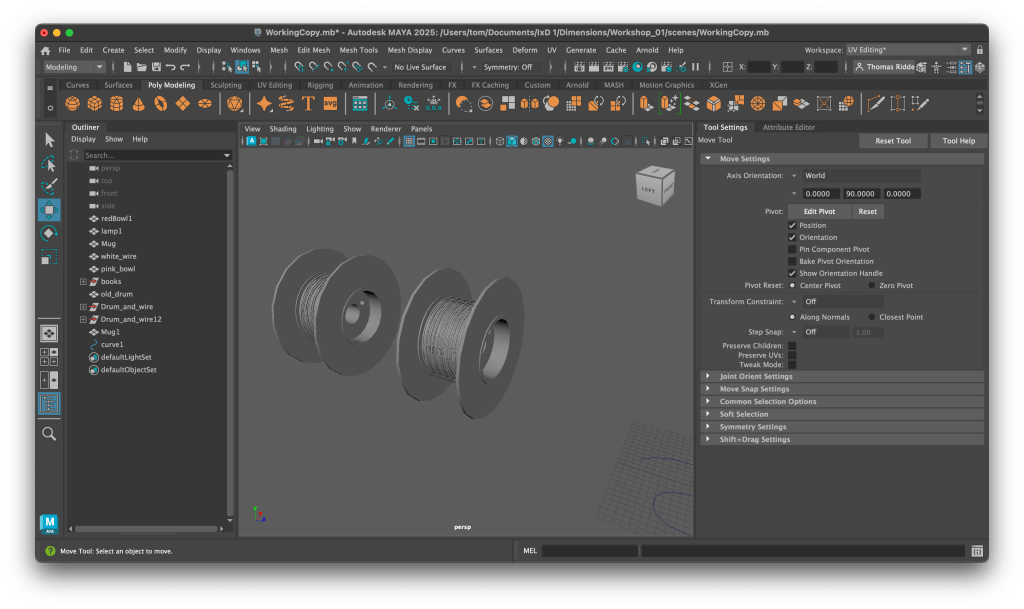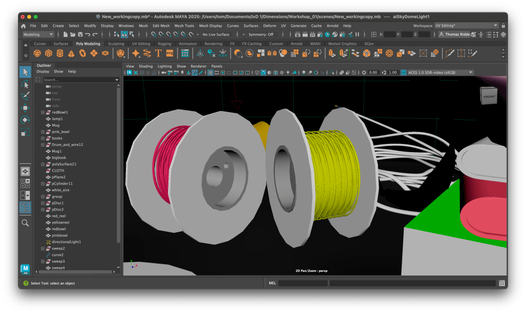 The first two workshops were great, I really felt like I was getting to grips with Maya as a package and how to work with primitives and just generally navigating in 3D space. An example of the random shapes I was messing about with.
