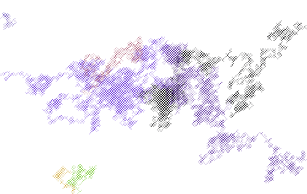 Here you can see how it evolves over time. Its just a basic walker with boundary detection that controls colour.